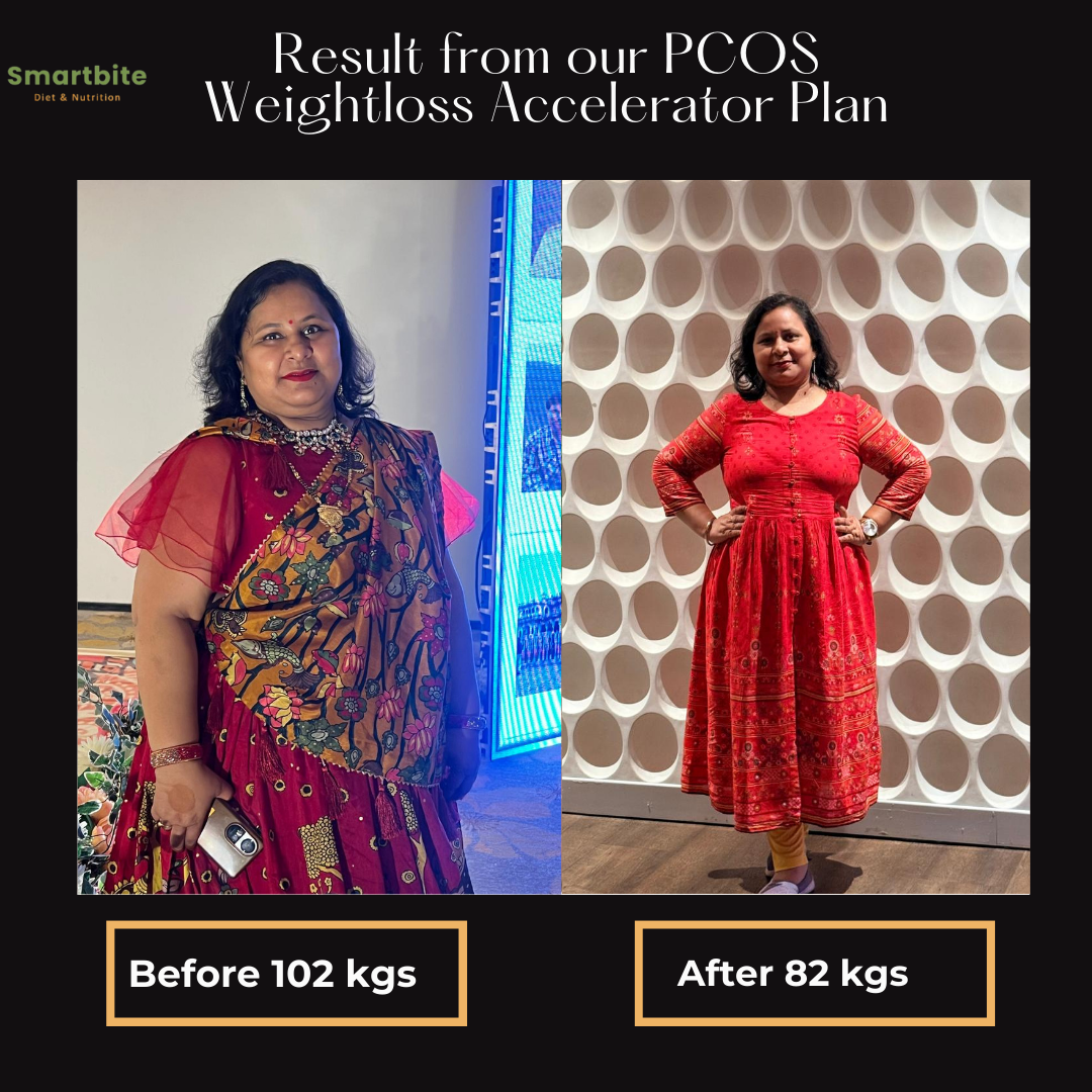 When Swati joined our PCOS Weight Loss Accelerator Plan, she was struggling with multiple health challenges like PCOS, high inflammation, thyroid imbalance, severe gut issues, stubborn weight gain, high cholesterol, pre-diabetes, irregular periods, and persistent knee pain. She had tried several approaches before, but nothing seemed to work for her body. Her weight felt stuck, her energy levels were low, and the constant health issues were affecting her confidence and daily life. We focused on reducing inflammation, correcting her metabolism, and creating a simple, structured nutrition plan that was easy to follow. Within just two weeks, she felt more energetic and noticed improvements in her digestion. Over time, Swati reduced 20 kgs and reversed her major health concerns along with it her periods are normal. Today, she feels lighter, healthier, and more confident , and most importantly, she found the framework practical and sustainable for her lifestyle.